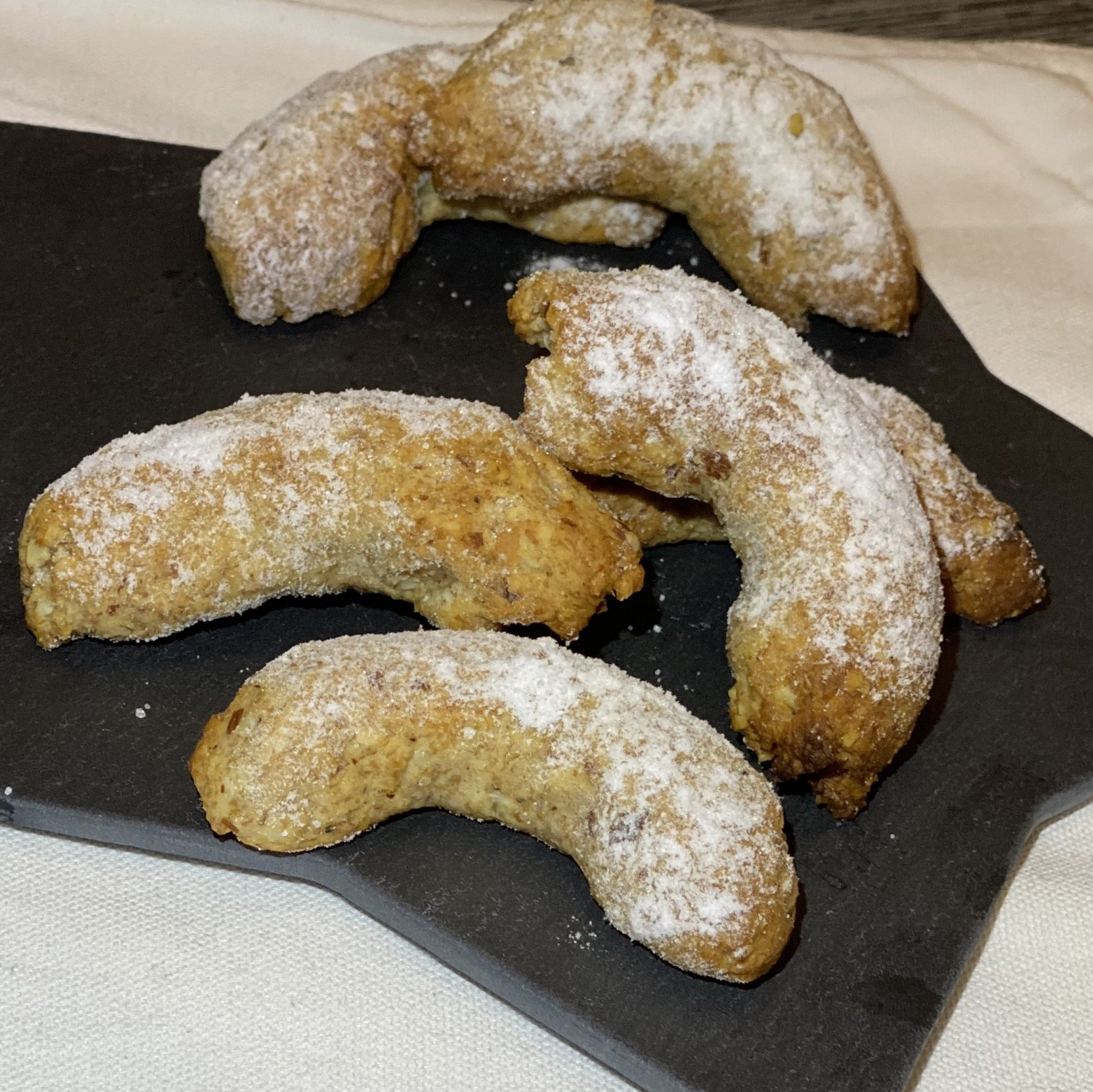 Überall lauern sie, die kleinen, gemeinen, süßen Leckereien zur Weihnachtszeit. Doch auch schlemmen ist erlaubt, denn die "Menge macht das Gift" und "Balance is the Key". Hier habe ich eine gesündere Variante der geliebten Vanille Kipferl für Euch: Zutaten 12 Stk. 125 g Dinkelmehl 50 g gem. Mandeln 40 g Xucker 4 g Backpulver 1 TL gem. Vanille 50 g Naturjoghurt 50 g Joghurt - Butter 10 g Puder - Xucker Zubereitung Backofen auf 170 °C Umluft vorheizen. Backblech mit Backpapier auslegen. Dinkelmehl, Mandeln, Xucker, Backpulver und Vanille vermischen. Weiche Butter und Joghurt zugeben, gut verkneten. Zur Kugel formen, in Frischhaltefolie 1 Stunde kühlen. Den Teig zu einer 1 cm dicken rolle formen und 5 cm lange Stücke abschneiden. Kipferl (Halbmond) formen und auf das Backblech legen 15 Minuten backen. Sofort in Puder - Xucker wälzen.